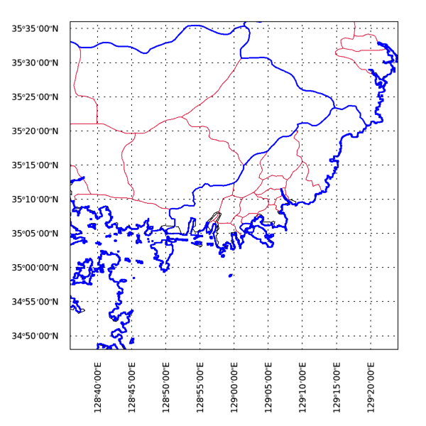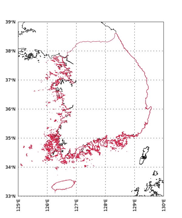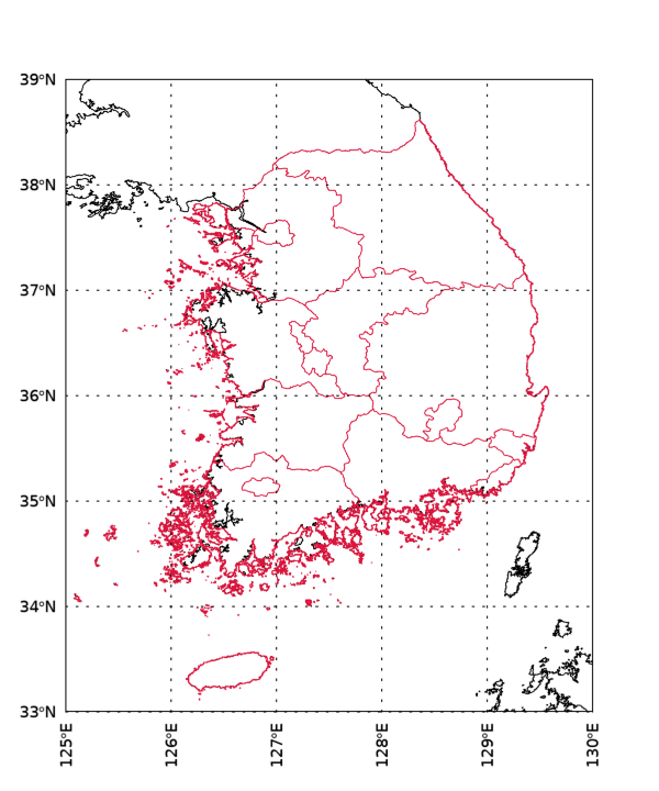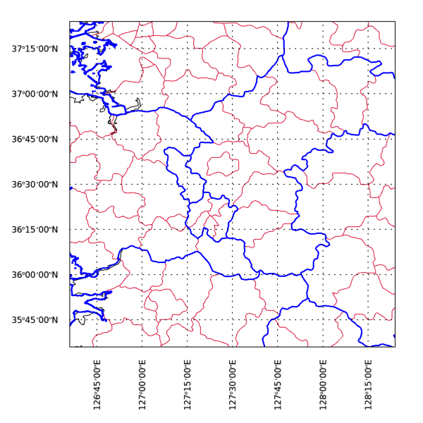 이번에는 경위도 범위를 다음과 같이 변경해서 다시 실행해 봅시다.