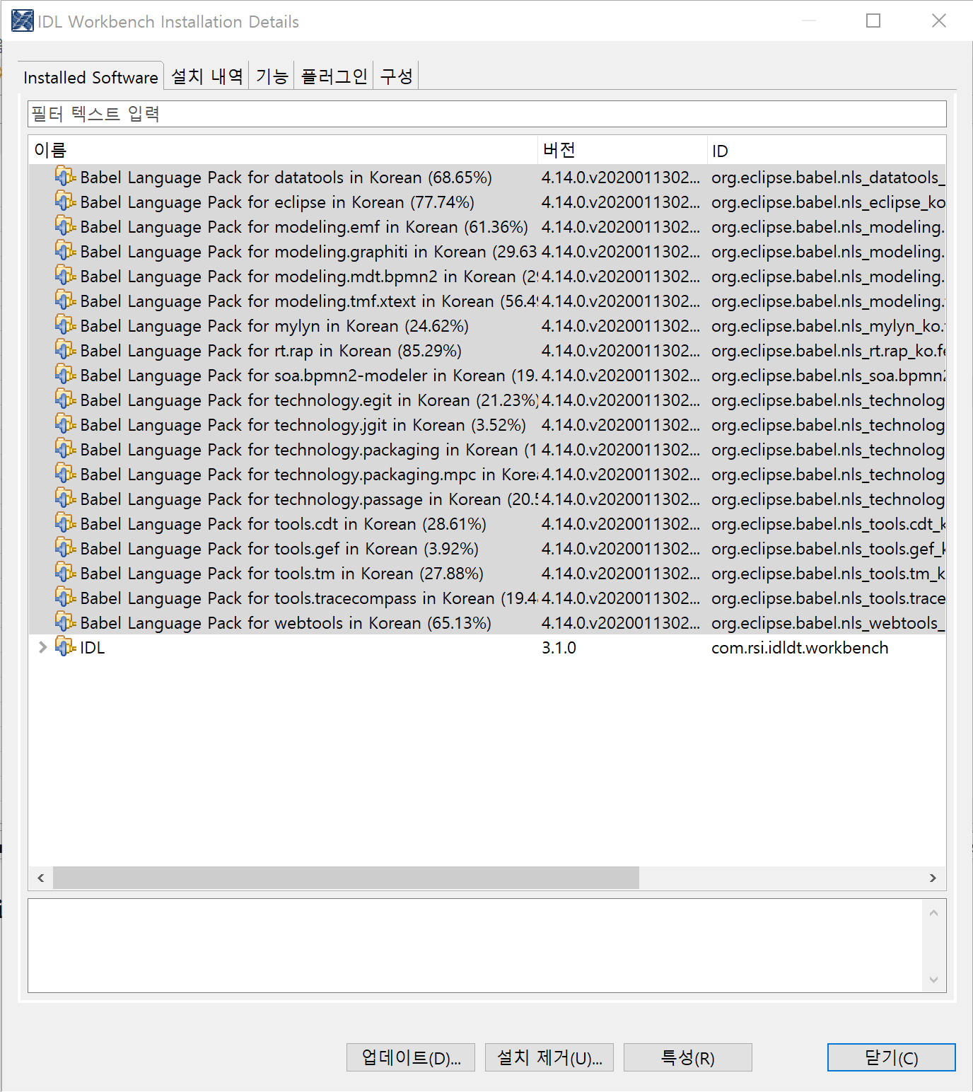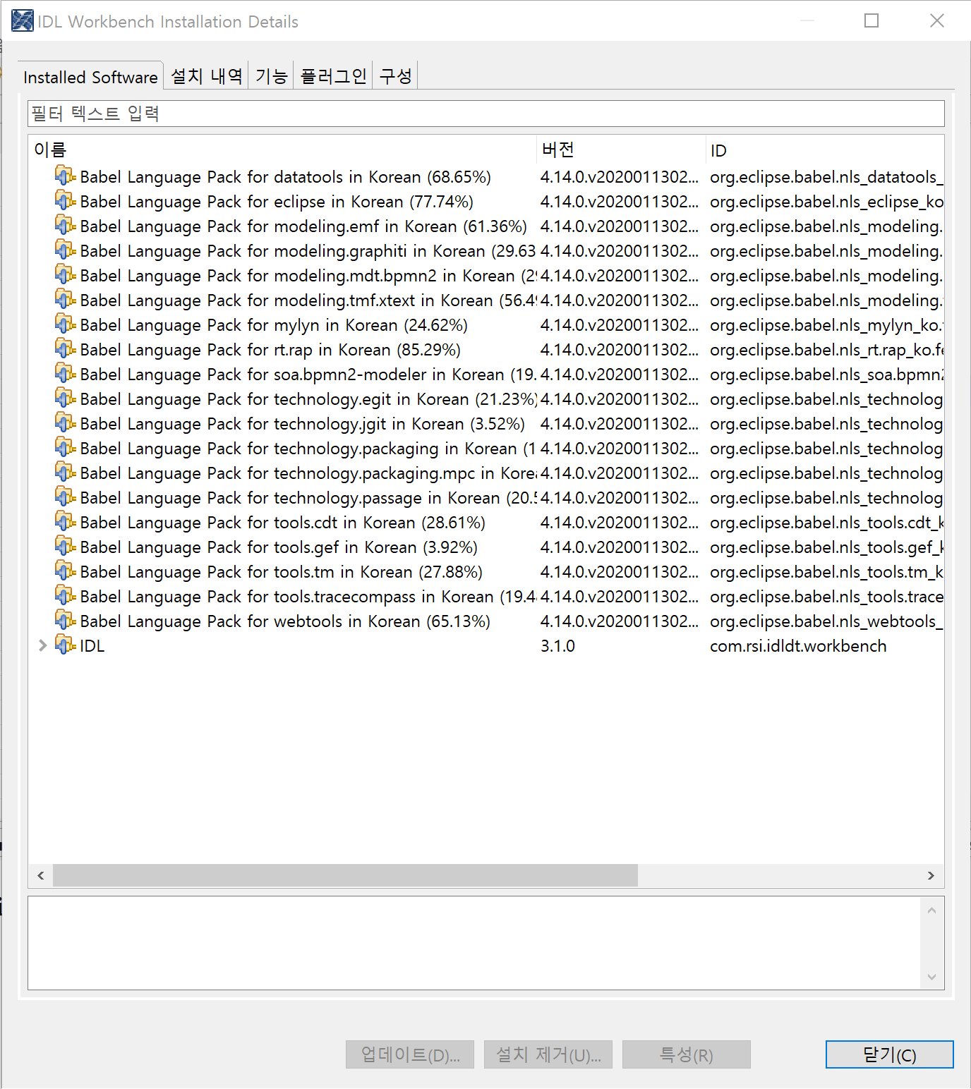 * 참고로 목록의 맨 밑에는 'IDL'이란 항목도 있는데 필수 플러그인이기 때문에 당연히 제거가 불가능합니다.