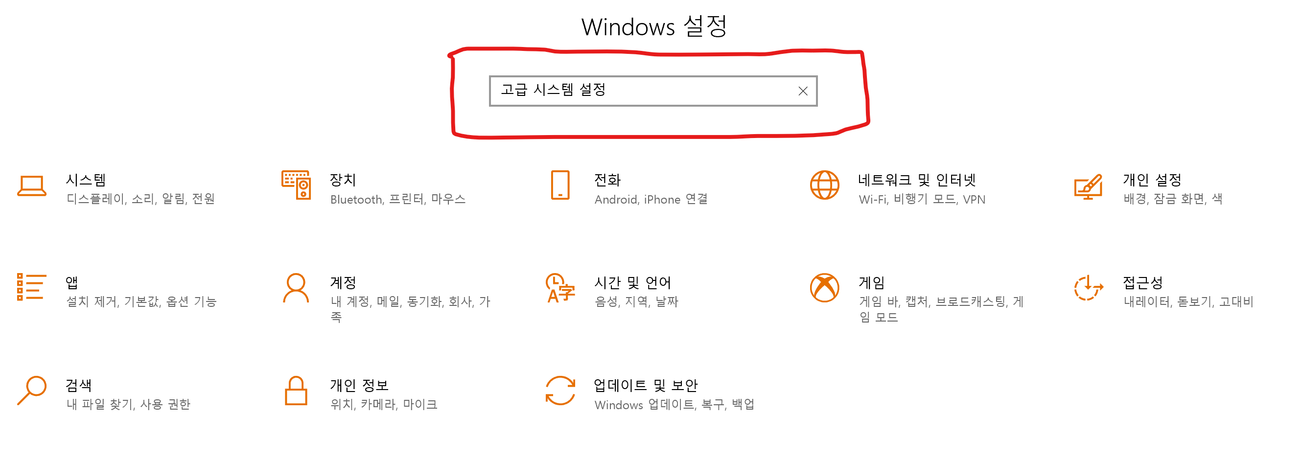 이러한 과정들이 다 완료되었다면, 그 다음은 디렉토리 경로(Path)에 대한 설정 작업이 필요합니다. 이러한 설정은 윈도우즈 OS 자체에서도 필요하고, Python 내에서도 필요합니다. 먼저 윈도우즈 OS에서는 PATH라는 시스템 변수의 내용을 약간 손을 봐야 하는데요. 이 설정을 위해서는 윈도우즈 10의 제어판에서 고급 시스템 설정으로 가야 합니다. 다음 그림과 같이 윈10의 제어판을 열어서 검색창에서 '고급 시스템 설정'을 타이핑해서 찾는 것이 가장 빠른 방법입니다.