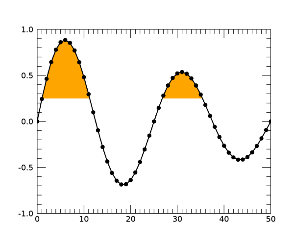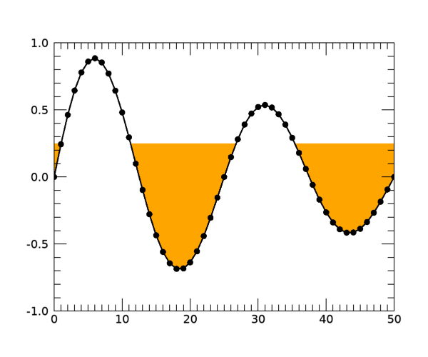 이러한 과정을 거치게 되면 Y값이 0.25인 수평선을 기준으로 플롯의 안쪽 부분이 색상으로 채워지게 됩니다. 그 모습은 다음 그림과 같습니다.