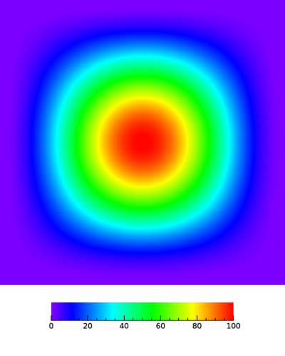 이와 같이 이번에는 배열 data가 실수형 배열로 정의되었고 값 범위는 0~100입니다. 그리고 이후의 표출 과정은 역시 그대로입니다. 표출의 결과는 다음과 같습니다.