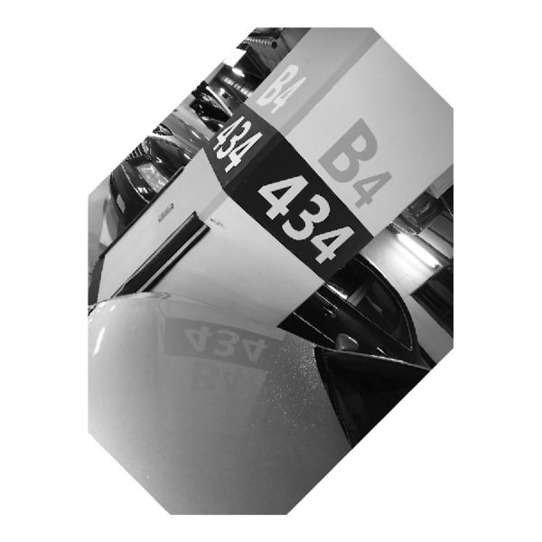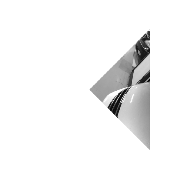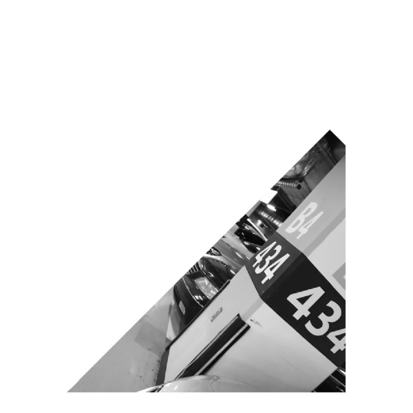 이렇게 하면 회전에 의하여 어쩔 수 없이 발생하는 무의미한 공백 영역에 존재하는 픽셀들에 대하여 그 값을 0으로 일괄 처리하게 됩니다. 그 결과는 다음 그림과 같습니다.