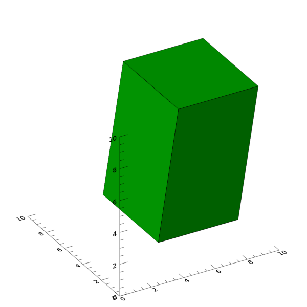 여기서는 압축 방향 벡터를 [3, 3, 6]으로 정의함으로써 X 및 Y 축 방향으로도 어느 정도 기울어진 방향으로 압출이 되도록 한 것입니다. 따라서 그림을 보면 비스듬한 방향으로 압출된 폴리곤을 얻었음을 확인할 수 있습니다.