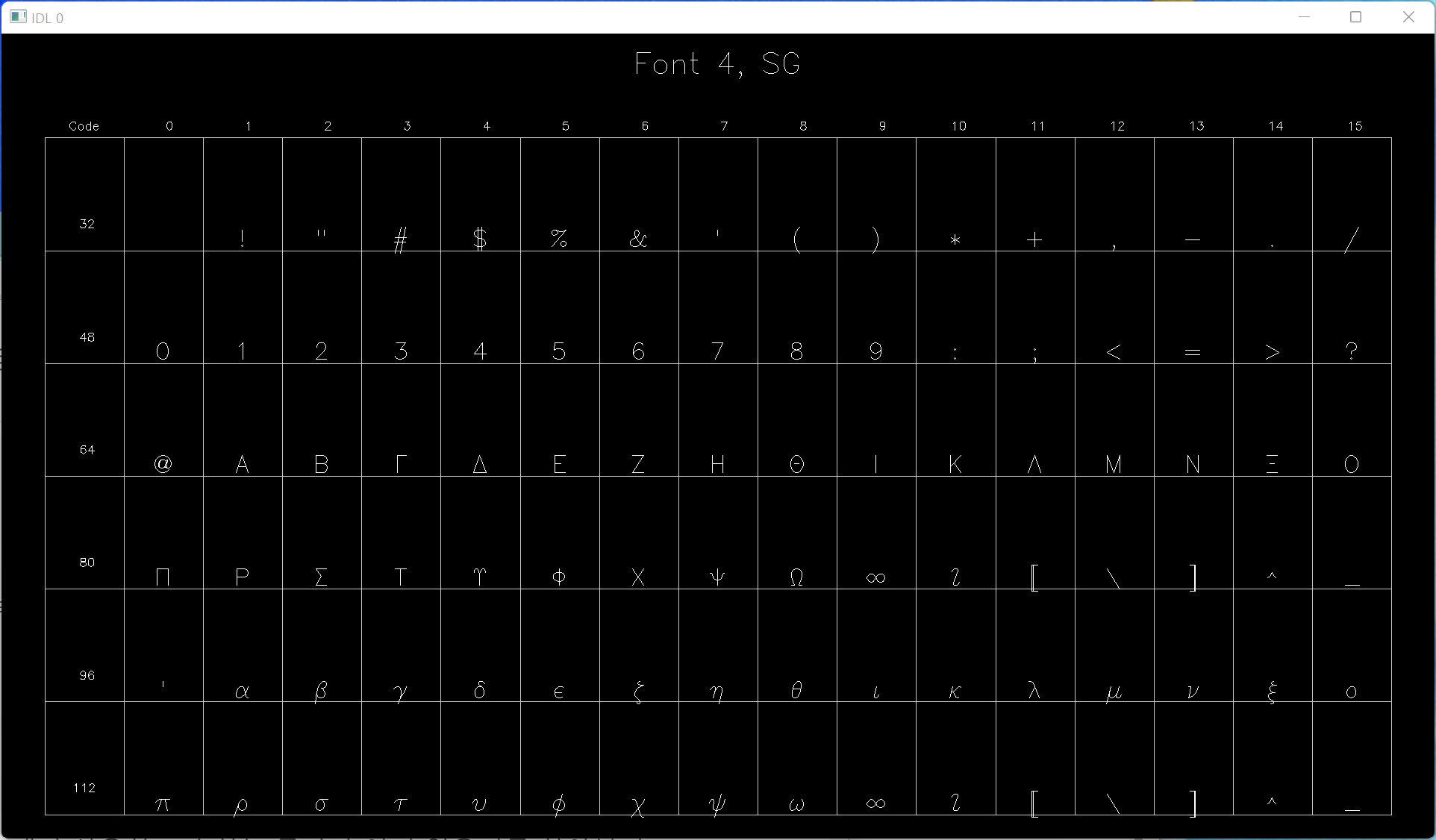 IDL> SHOWFONT, 4, 'SG'