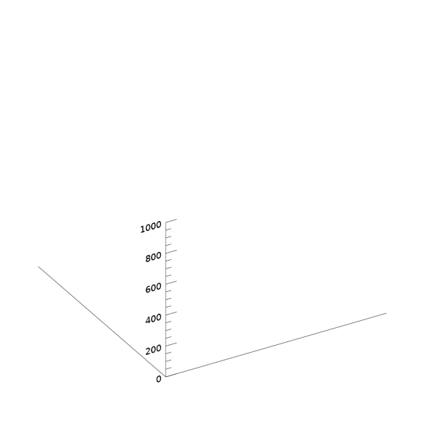 여기서 xx, yy, zz는 그냥 PLOT3D 함수를 사용하기 위한 최소한의 요건 때문에 임시로 생성한 데이터일 뿐이기 때문에, PLOT3D 함수에서는 /NODATA 키워드를 사용함으로써 실제로는 보이지 않도록 처리하였습니다. 그리고 어차피 나중에 바탕 지도를 XY 평면에 표시할 것이기 때문에 X, Y 축에 대해서는 눈금 및 문자들이 보이지 않도록 처리하였습니다. 여기까지 진행된 결과는 다음 그림과 같습니다.