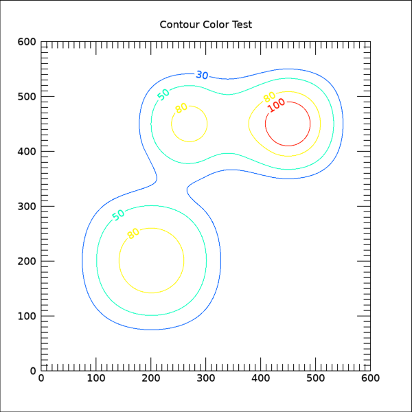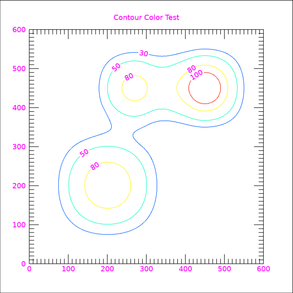TITLE='Contour Color Test', AXIS_STYLE=2, FONT_SIZE=11, $