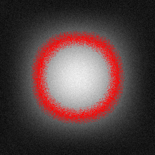 어떤 특정한 조건을 내걸고 그 조건을 만족하는 화소들을 판별한 후 이미지 상에서 이러한 화소들만 특별히 강조하는 표출 방식에 관한 내용이 바로 얼마전의 게시물에서 소개된 바 있습니다. 여기서는 2차원 데이터를 흑백 계열 색상의 컬러테이블로 표출해놓은 상태에서 특정한 화소들만 붉은색으로 강조하여 표시하는 예제를 소개하면서 NG 체계 기준으로 두가지의 구현 방법을 소개하였습니다.