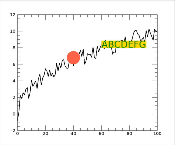 tx = TEXT(60, 8, 'ABCDEFG', COLOR='green', FILL_COLOR='gold', FONT_SIZE=24, /DATA)