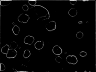 이와 같이 0 또는 1의 값들로 구성되어 있고 전체적인 패턴은 마치 마름모 또는 원형에 가깝다고 볼 수 있습니다. 실제로 MORPH_GRADIENT 함수를 비롯하여 형태학적 이미지 처리 기법을 수행하는 다른 함수들 역시 이와 같이 대상 이미지 배열 및 구조화 요소를 필수적인 인수들로 받아야 한다는 것을 유의해야 합니다. 그리고 구조화 요소의 크기 및 형태에 따라서 결과가 달라질 수 있기 때문에, 데이터의 특성에 맞는 구조화 요소를 정의하고 적용시키는 것이 중요한 과제이기도 합니다. 어쨌든 여기서는 위와 같이 정의된 배열 disc를 구조화 요소로 사용하기로 합니다. 이제 MORPH_GRADIENT 함수를 사용하여 처리를 하고 그 결과를 살펴봅시다. 그 과정은 다음과 같습니다.
