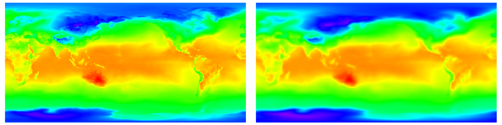2차원 데이터에 대하여 Gauss-Legendre 알고리즘을 기반으로 구면 좌표계로의 Spherical Harmonic 변환 및 역변환을 할 수 있도록 해주는 관련 기능함수들인 SPHERE_HARM_FORWARD 및 SPHERE_HARM_INVERSE 함수가 추가되었습니다. 이러한 기법은 기상 및 해양 분야에서 파도의 패턴 분석 작업 뿐 아니라 지자기 및 태양 자기장 분석 등에서도 중요한 역할을 합니다. 또한 일정한 파수(wavenumber) 이하의 패턴을 걸러내는 기능을 담당하는 SPHERE_HARM_FILTER 및 SPHERE_HARM_KERNEL 함수도 함께 추가되었습니다. 다음은 SPHERICAL_HARM_FILTER 함수를 사용하는 예제입니다.