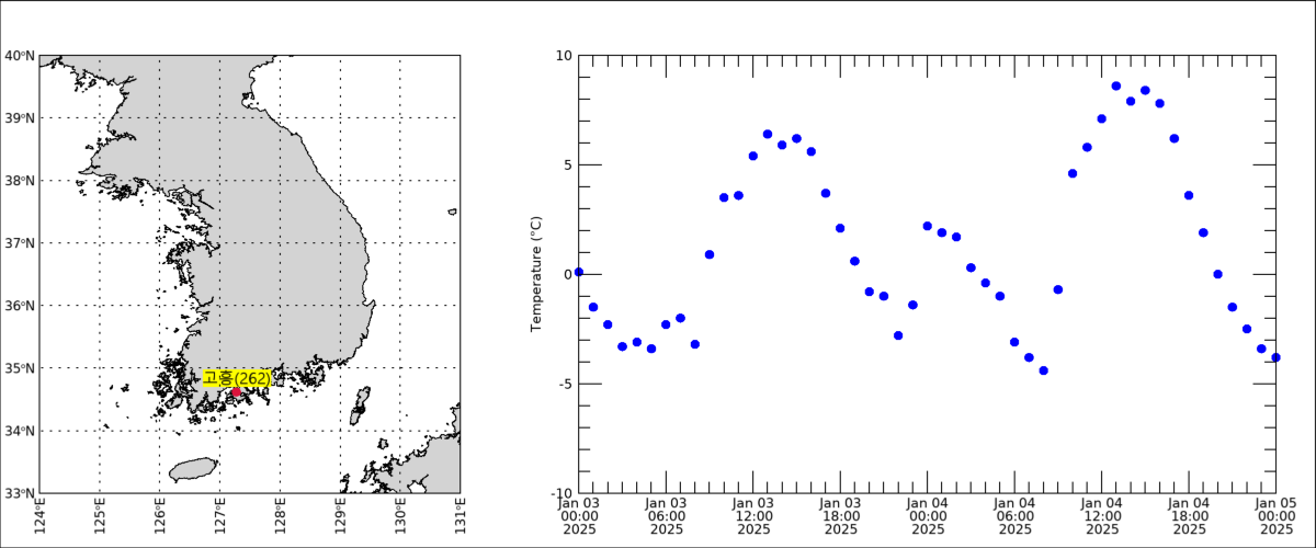 그리고 262로 변경하면 고흥 지점에 대한 결과 그림을 얻을 수 있습니다.