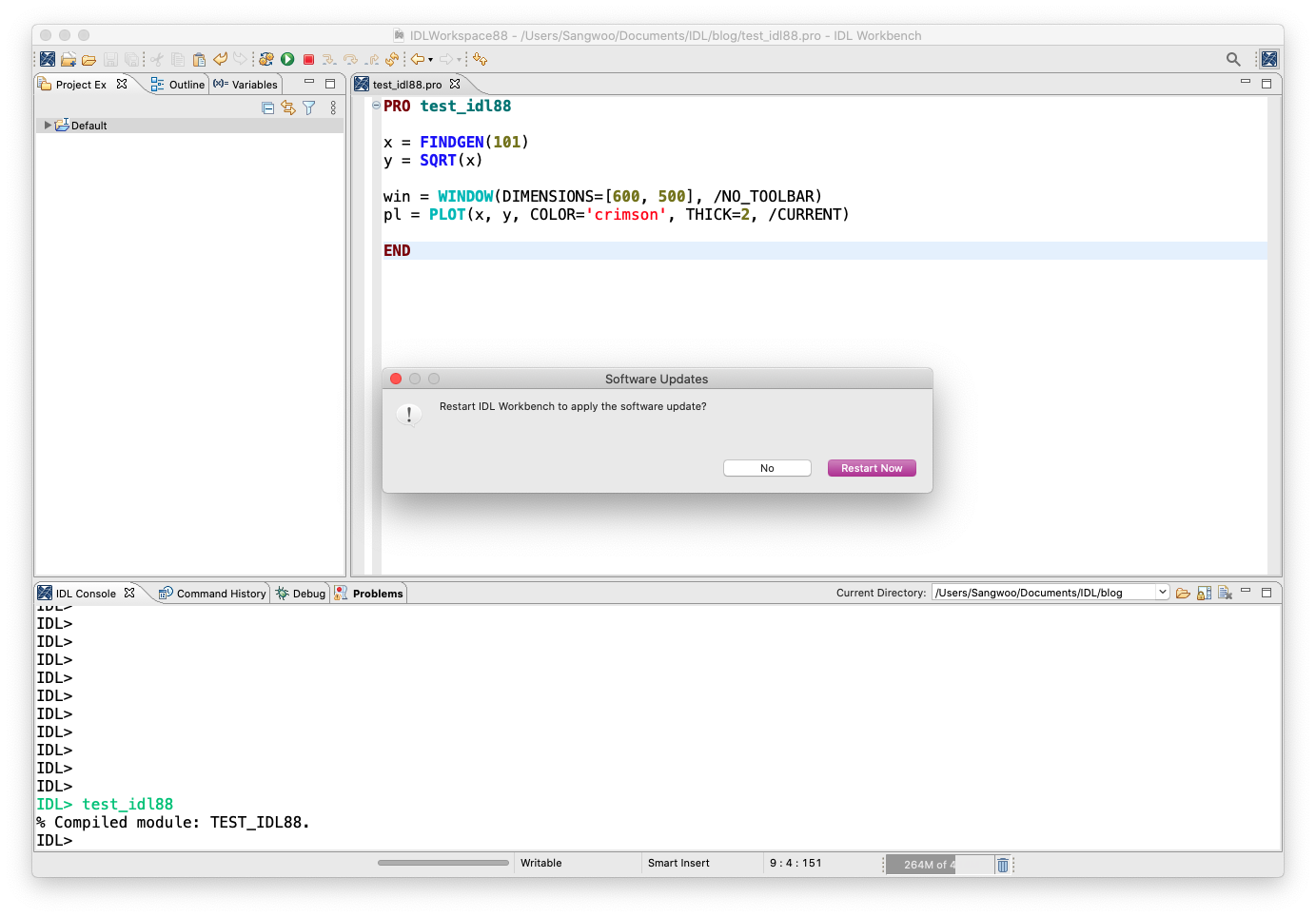 이제 모든 설치과정이 종료되면 다음과 같이 IDL을 재시작해야 언어팩이 적용된다는 팝업이 뜹니다. "Restart Now" 버튼을 눌러주면 됩니다.
