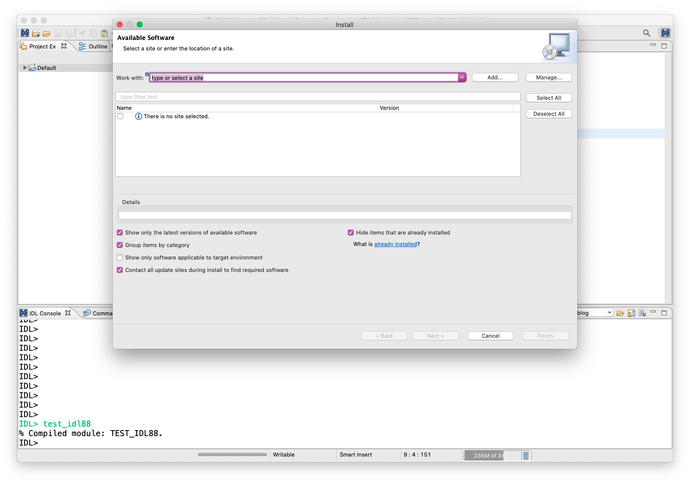 The IDL Workbench previously included several different languages; with this release, you will need to install new languages from the Babel Language Pack repository available in Eclipse. See Install the Marketplace Client and Plug-ins and Set IDL Workbench Internationalization for details.