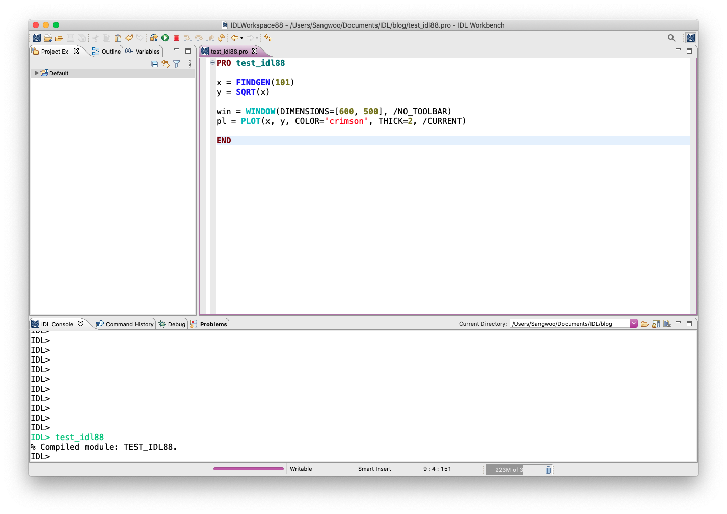 먼저 제가 Mac OS용 IDL 8.8을 처음 설치하고 실행했던 모습은 다음 그림과 같았습니다. 메뉴바 부분은 캡쳐가 안되었지만 메뉴바의 기능들의 이름 역시 처음에는 모두 영문이었습니다.