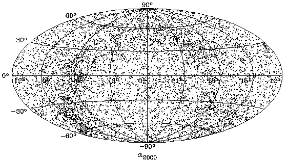 일단 이 정도면 나름대로 YBSC의 별들이 천체 지도상에 잘 표시된 것 같습니다. 참고로 이미 서두에서 언급했던 YBSC 공식 웹페이지에서도 이와 같이 카탈로그의 별들을 모두 표시한 천체 지도를 볼 수 있습니다. 공식 웹페이지에 게재되어있는 그림은 다음과 같습니다.